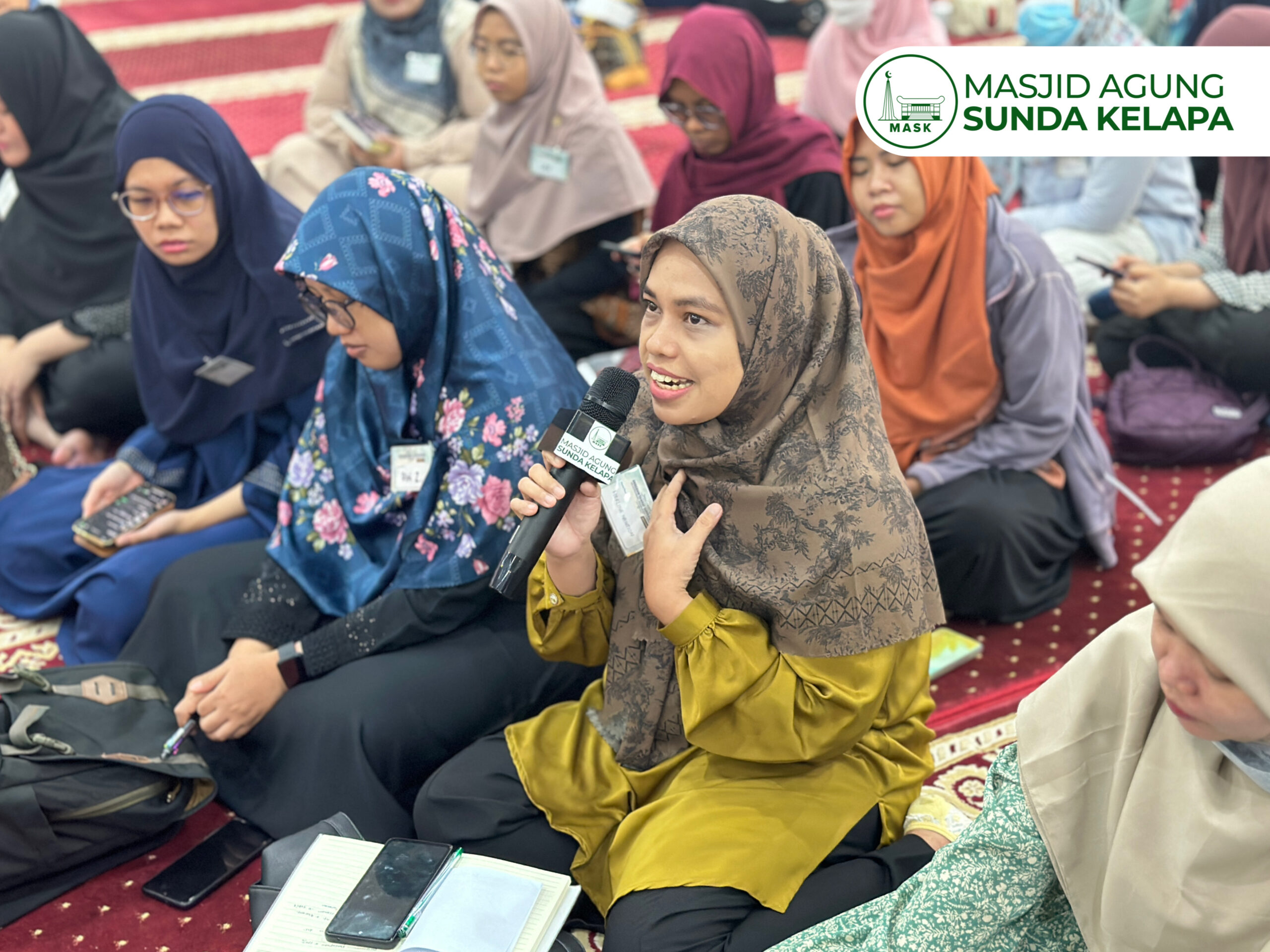 Hari Sabtu (15/6/24), acara dimulai pukul 09.00 WIB dan dipandu oleh Master of Ceremony (MC) ust. Reno Fathur, bagian Informatika dan Informasi Masjid Agung Sunda Kelapa. Seperti pertemuan sebelumnya, pertemuan minggu ini juga diawali dengan sesi FGD (focus group discussion) bersama para musyrif dan musyrifah. Peserta dibagi ke beberapa kelompok kecil agar semakin mengenal satu sama lain. Sebelumnya peserta juga diarahkan untuk menjawab quiz yang telah disediakan setiap pekannya untuk membahas materi minggu lalu. Peserya bisa langsung berkonsultasi kepada musyrifah masing-masing apabila ada pertanyaan atau materi yang belum dimengerti.