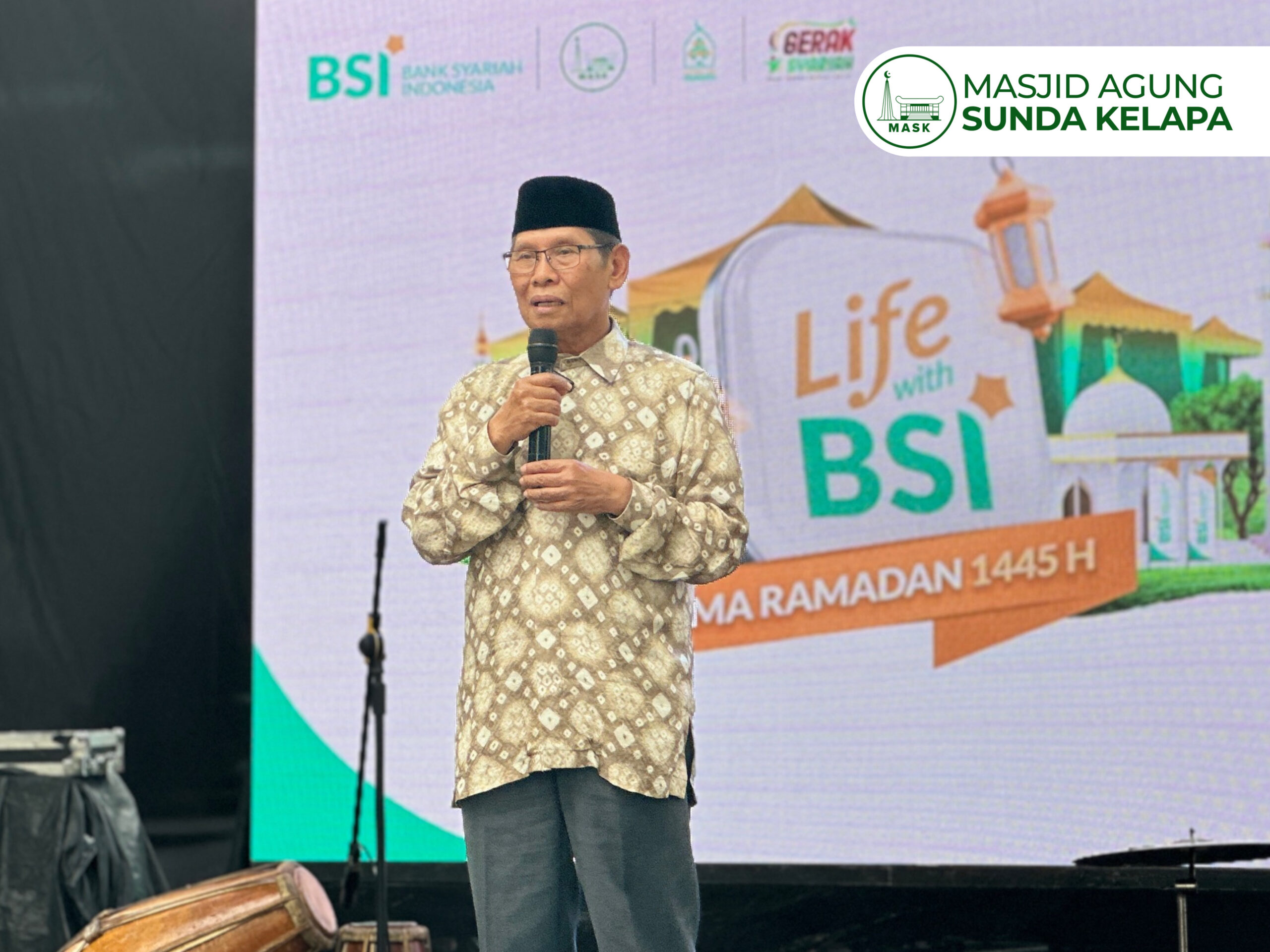 “Saya ucapkan selamat kepada BSI yang telah berhasil masuk Top 10 Bank Syariah Global. Performa impresif BSI mampu menjadikan perseroan masuk ke jajaran Top 10 Global Islamic Bank dari sisi kapitalisasi pasar. Tahun ini adalah tahun ketiga kerjasama Masjid Agung Sunda Kelapa dan BSI dalam menyelenggarakan Gema Ramadhan. Kebetulan Masjid Agung Sunda Kelapa adalah masjid transit lalu lalang, untuk sholat, buka bersama, dan ikut teraweh. Dengan jamaah yang 80% didominasi oleh anak-anak muda,” ujar bpk. Setyanto P. Santosa dalam sambutannya.