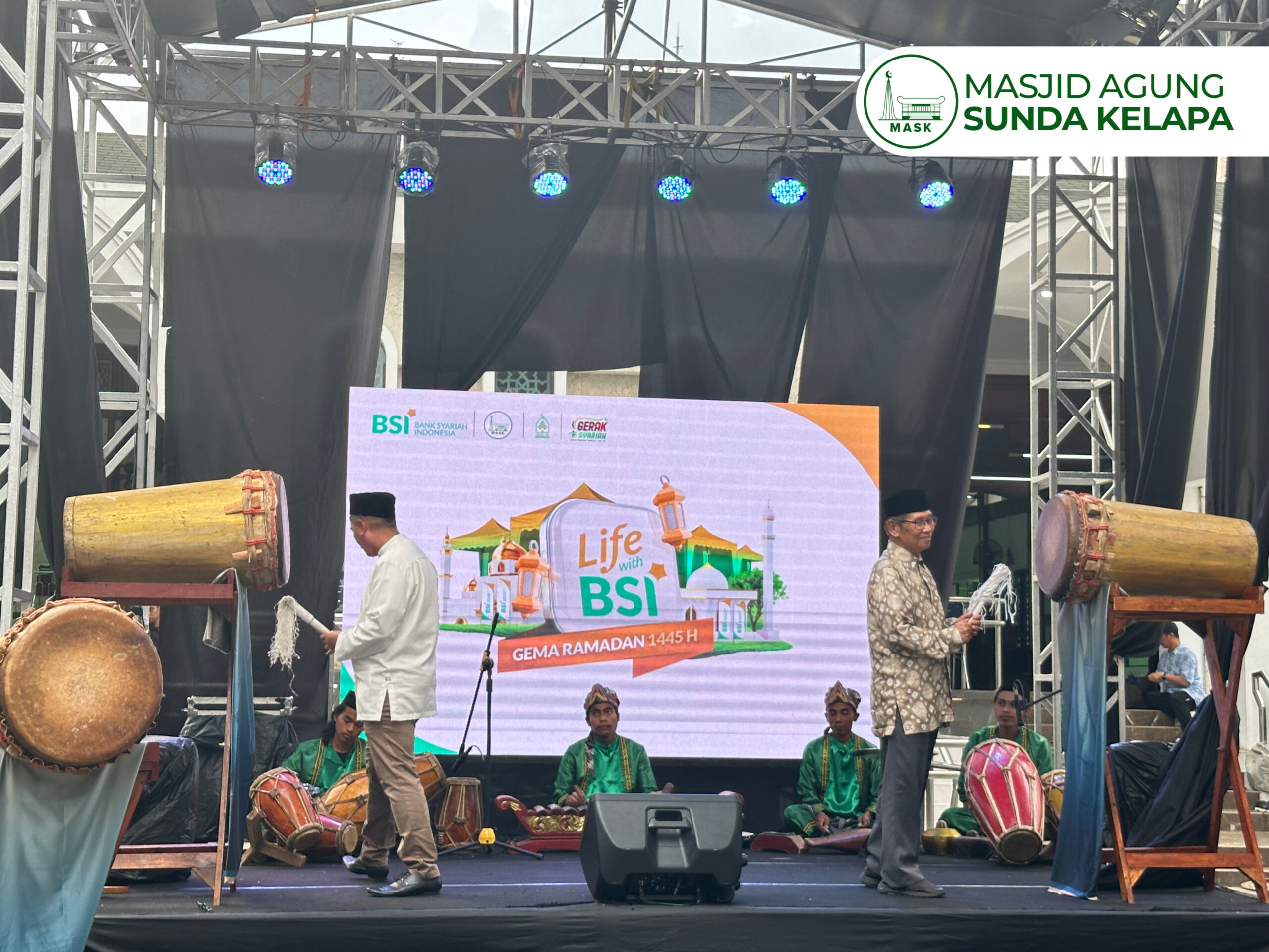 Puncak acara pembukaan roadshow Gema Ramadhan BSI 1445 H di Masjid Agung Sunda kelapa dilakukan secara simbolis oleh bpk. Setyanto P. Santosa dan bpk. Deden Durachman dengan memukul bedug. Lantas acara dimeriahkan dengan hiburan musik dan penampilan tari bedug.