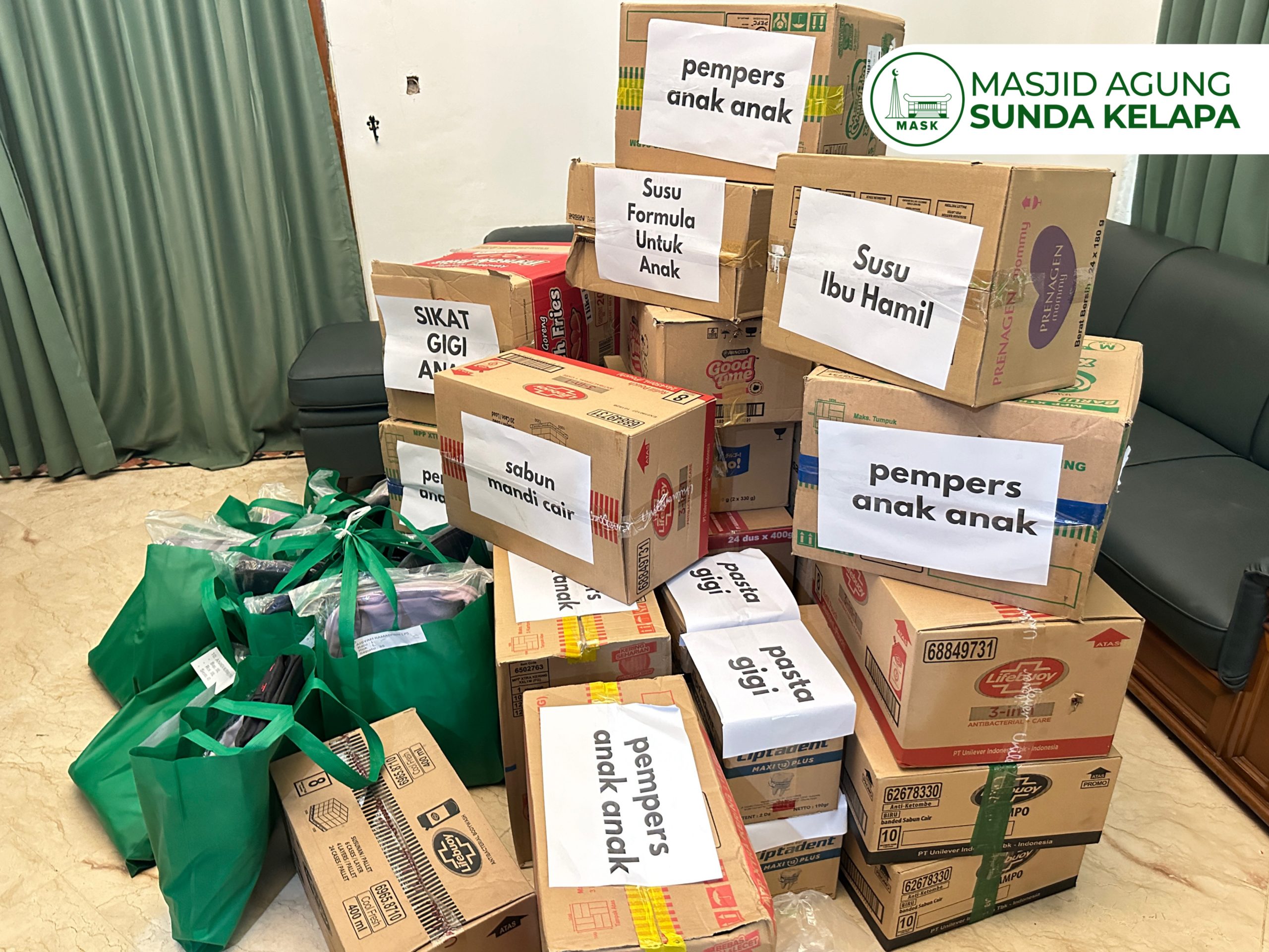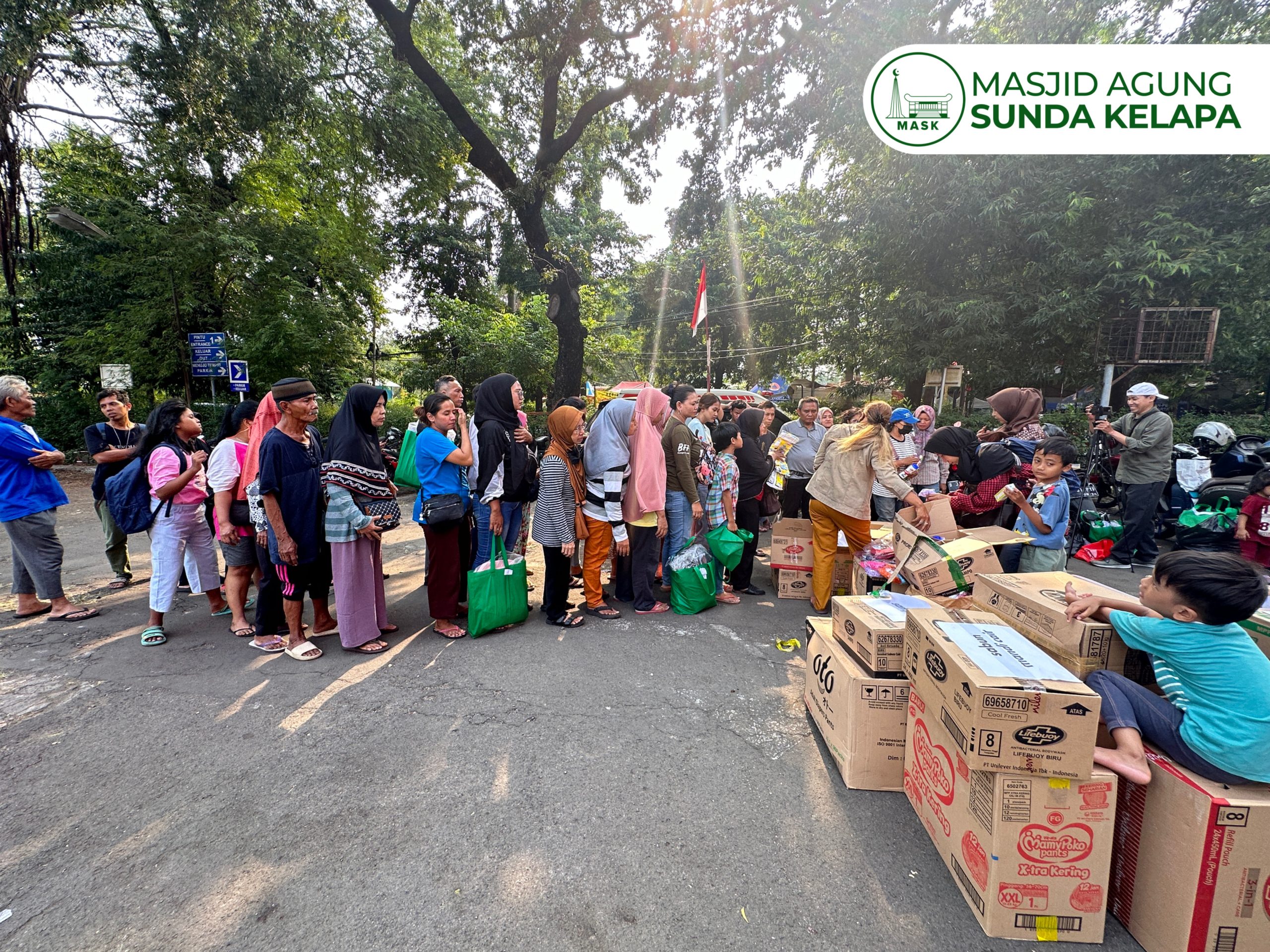 Melalui Bidang Sosial MASK, yang diwakilkan oleh ibu Rahmadiana selaku Kepala Bidang dan ibu Badriah selaku staff Kabid Sosial, serta ibu Kusnarmini sebagai Kepala Bidang Keuangan dan HRD. Masjid Agung Sunda Kelapa menyalurkan sejumlah bantuan berupa seragam sekolah, susu formula anak, susu ibu hamil, pampers bayi, pampers lansia, peralatan mandi, dan kebutuhan sehari-hari lainnya. Penyaluran bantuan berlangsung di area Pasar Jaya Manggarai dan didistribusikan ke sejumlah kepala keluarga yang telah terdata.