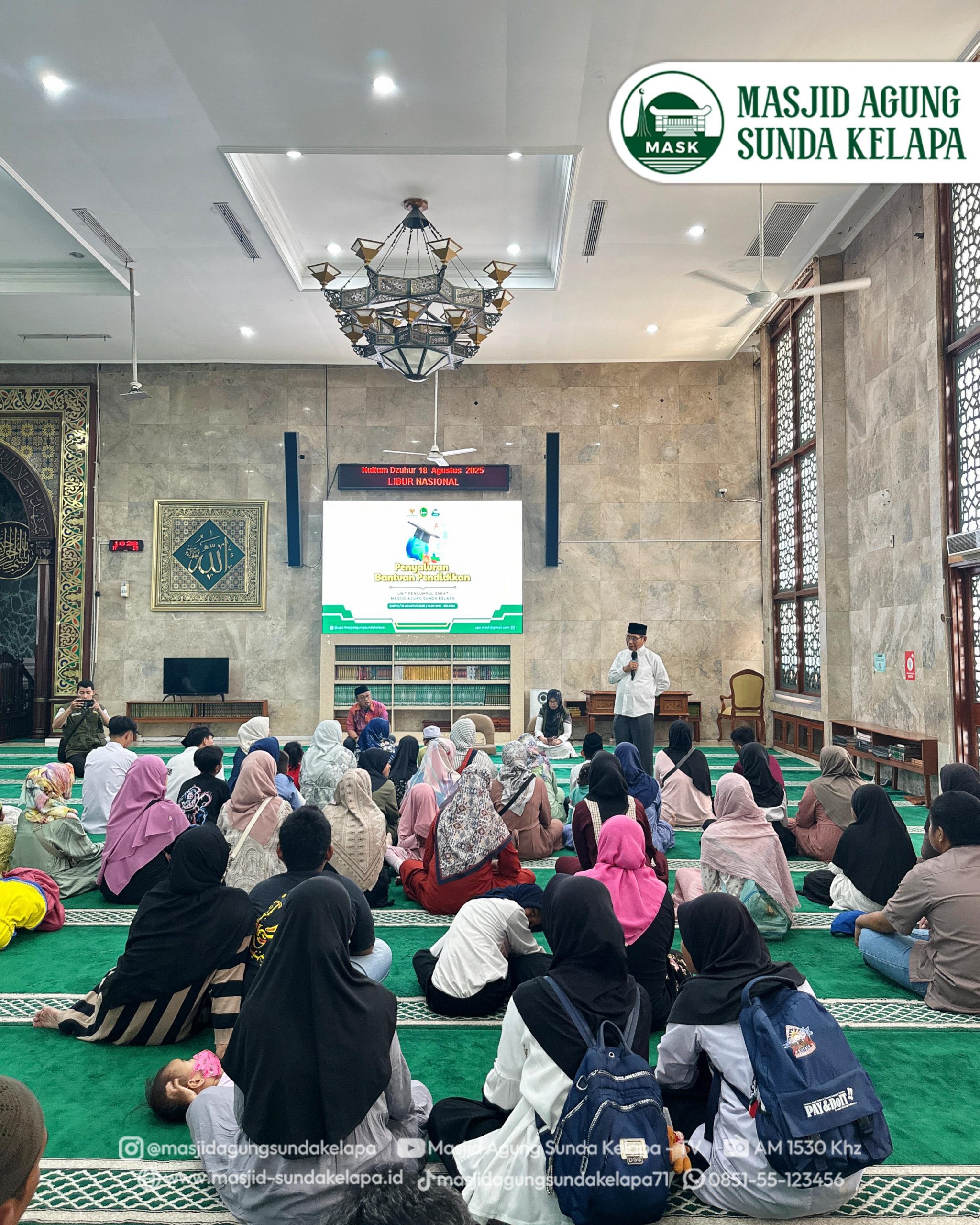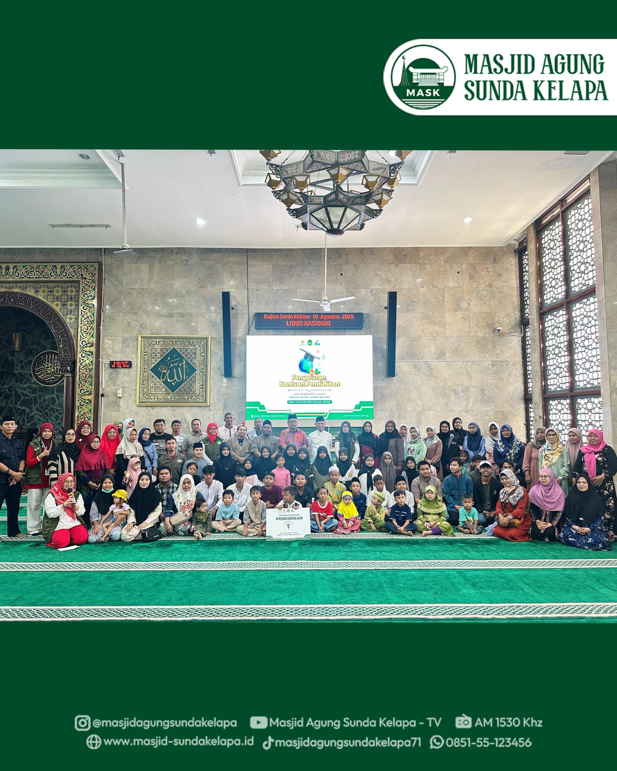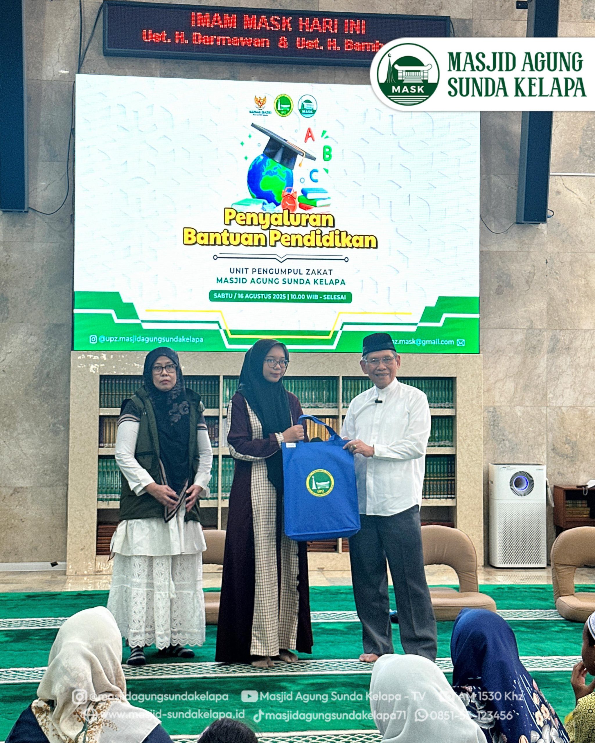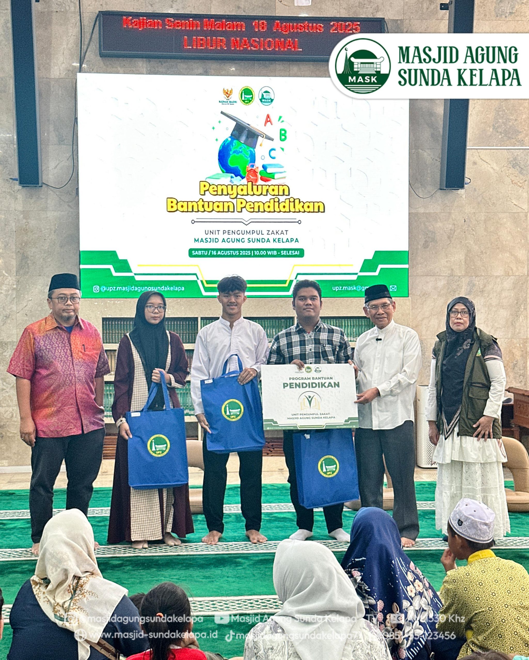 Jakarta, 16 Agustus 2025 – Masjid Agung Sunda Kelapa (MASK) melalui Unit Pengumpulan Zakat (UPZ) kembali menunjukkan komitmennya dalam mendukung keberlangsungan pendidikan generasi muda. Pada Sabtu, 16 Agustus 2025, bertempat di Ruang Ibadah Utama pukul 10.00 WIB, dilaksanakan acara penyerahan “Program Bantuan Pendidikan” yang diperuntukkan bagi anak-anak dari Marbot Masjid, penerima program AAR (Adik Asuh Remaja Islam Sunda Kelapa), serta PASKA (Pendidikan Anak Asuh Sunda Kelapa).
