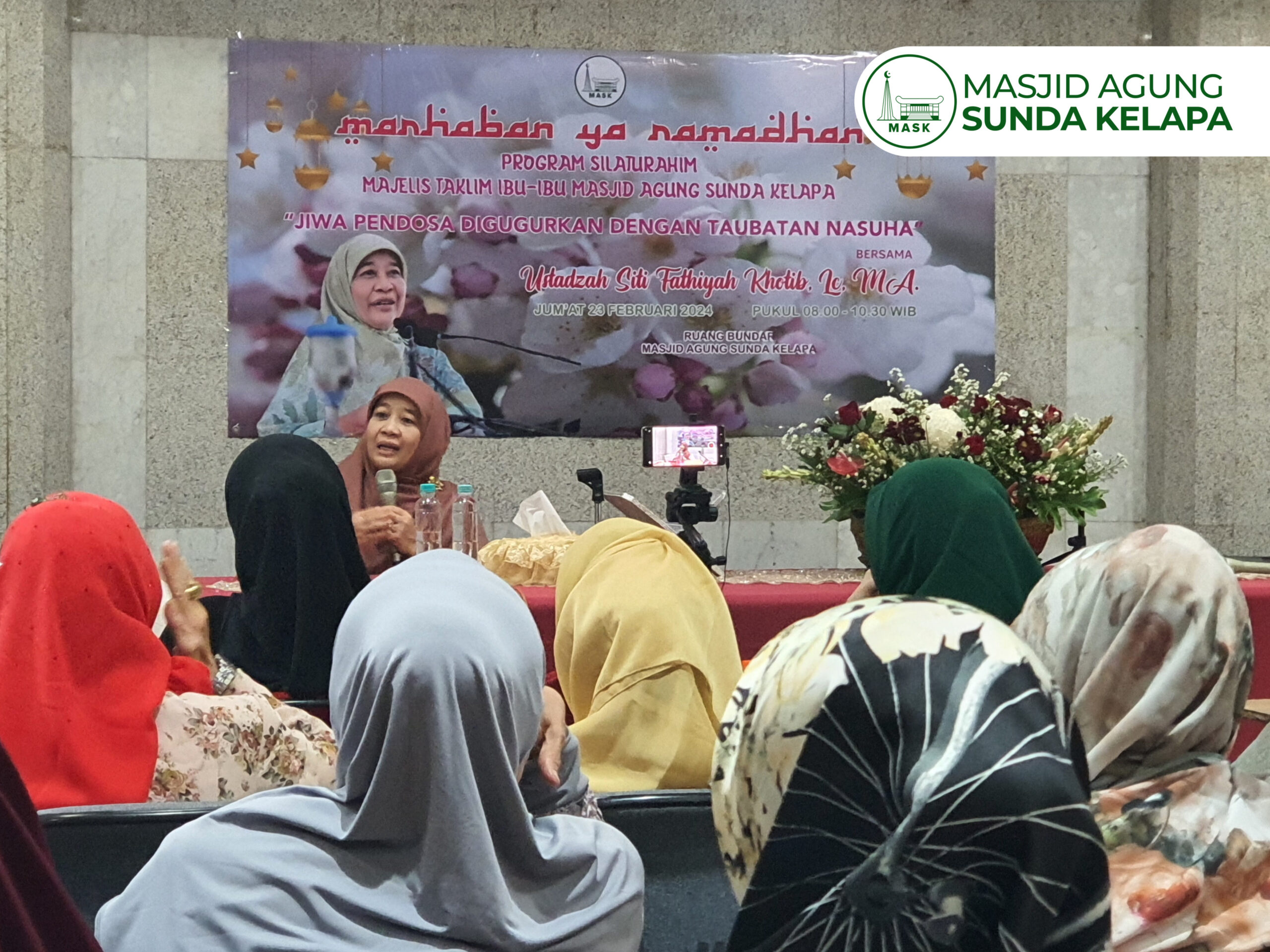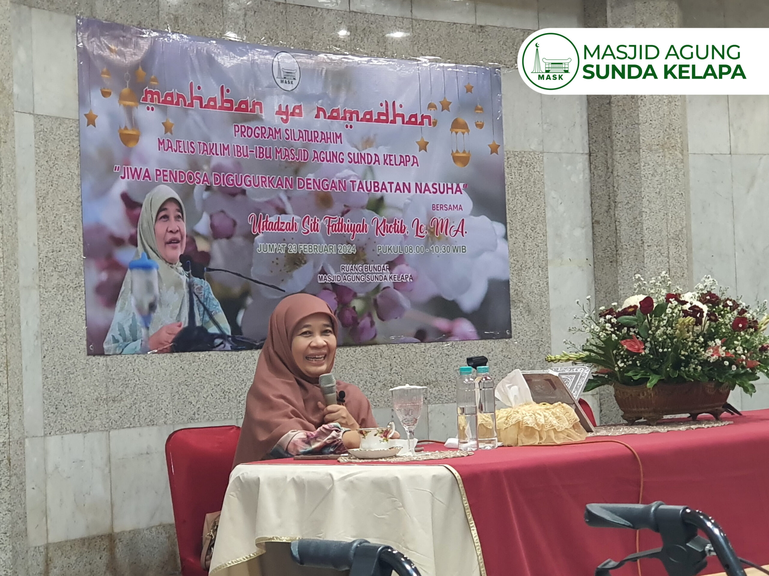 Jumat, 23 Februari 2024 – Majelis Taklim Ibu-Ibu Masjid Agung Sunda Kelapa (MTII-MASK) mengadakan Kajian Bulanan bersama ustadzah Siti Fathiyah Khotib, Lc. MA. Dengan tema, “Jiwa Pendosa Digugurkan Dengan Taubatan Nasuha”.