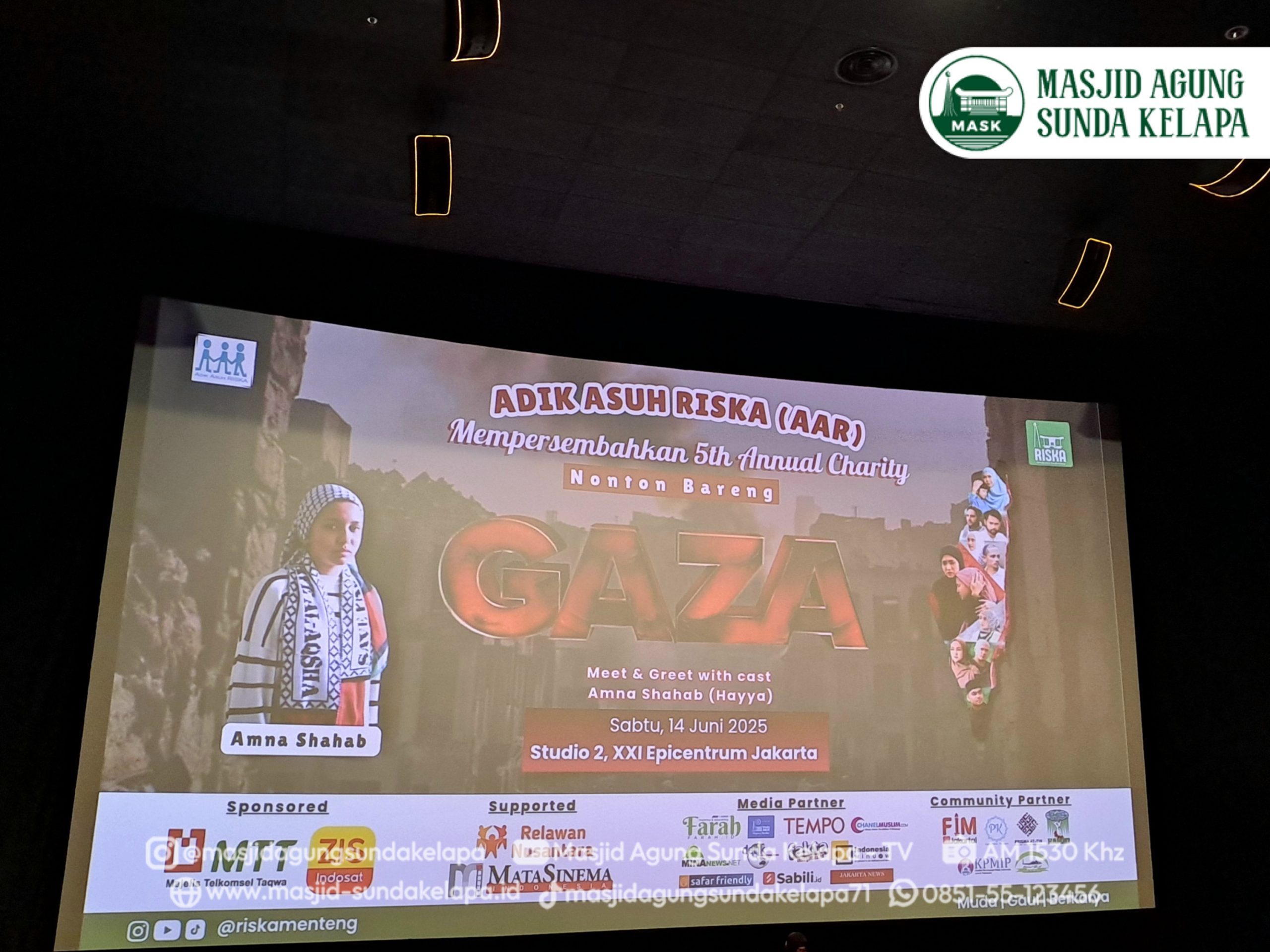 Jakarta, 14 Juni 2025 — Adik Asuh RISKA (Remaja Islam Sunda Kelapa) mengadakan Nobar Charity Film Gaza Hayya 3 di Epicentrum XXI, Jakarta Selatan pada Sabtu (14/6). Acara ini memikat hati berbagai latar belakang masyarakat Indonesia dari anak-anak hingga dewasa. Tujuan Nobar Charity ini adalah bentuk kepedulian terhadap Palestina.